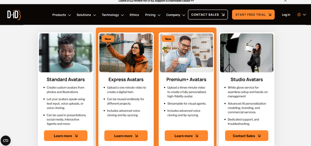D-ID makes avatars from photos. It has templates for e-commerce scenes like try-ons.