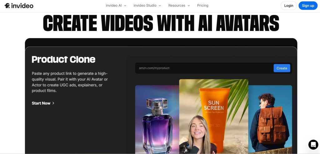 InVideo has many templates for e-commerce videos with avatars.