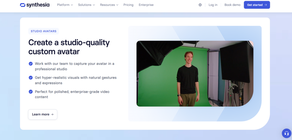 Synthesia is a popular tool for making videos with avatars. It’s good for e-commerce because it has templates for product demos and ads.