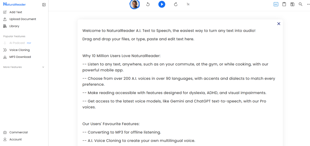 NaturalReader helps you listen to documents, PDFs, and web pages. According to PCMag, it’s one of the best tools for this purpose.
