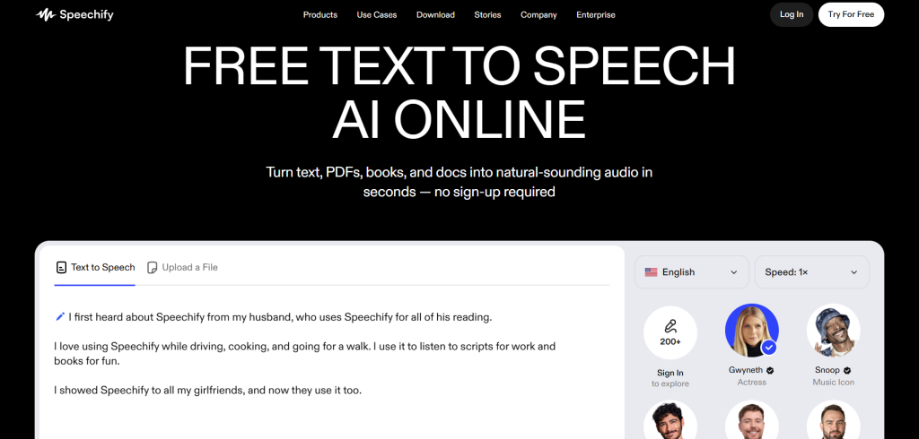 You can paste text or upload files easily. The tool reads them out loud while you do other work. This is perfect for multitasking.