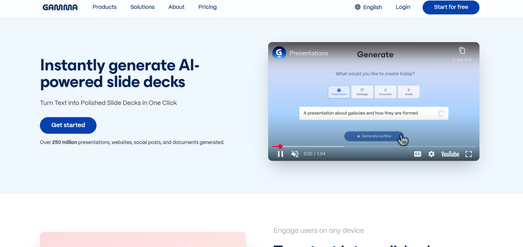 You start by typing a topic. Gamma uses AI to make slides. It adds text, images, and layouts. The slides look modern and clean. You can edit them easily. Gamma also lets you share slides online. It works on phones and computers.