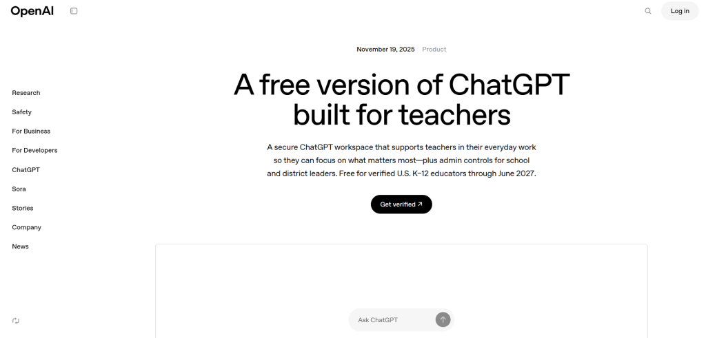 ChatGPT is a chat AI from OpenAI. It answers questions and writes things. Teachers use it for many tasks.