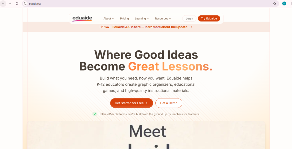 Eduaide.AI is another AI tool for teachers. It helps make games, plans, and organizers. It is like a helper that creates fun stuff for class.