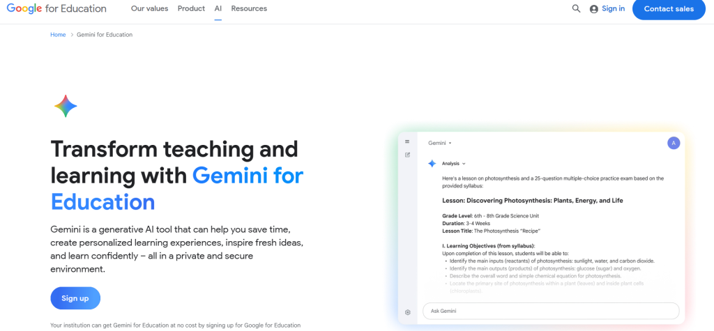 Google Gemini is an AI that searches and helps. It is good for research. Teachers get it free with Google accounts.
