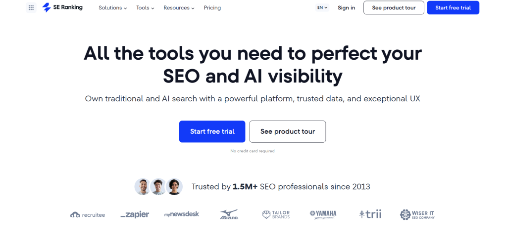 SE Ranking has an AI tracker that is very smart. It compares how you show up in AI versus normal search. It has a special add-on just for local business profiles. It lets you see if you are winning in AI boxes. It optimizes your page to make sure you stay on top. This tool helps you stay ready for the new way people search.