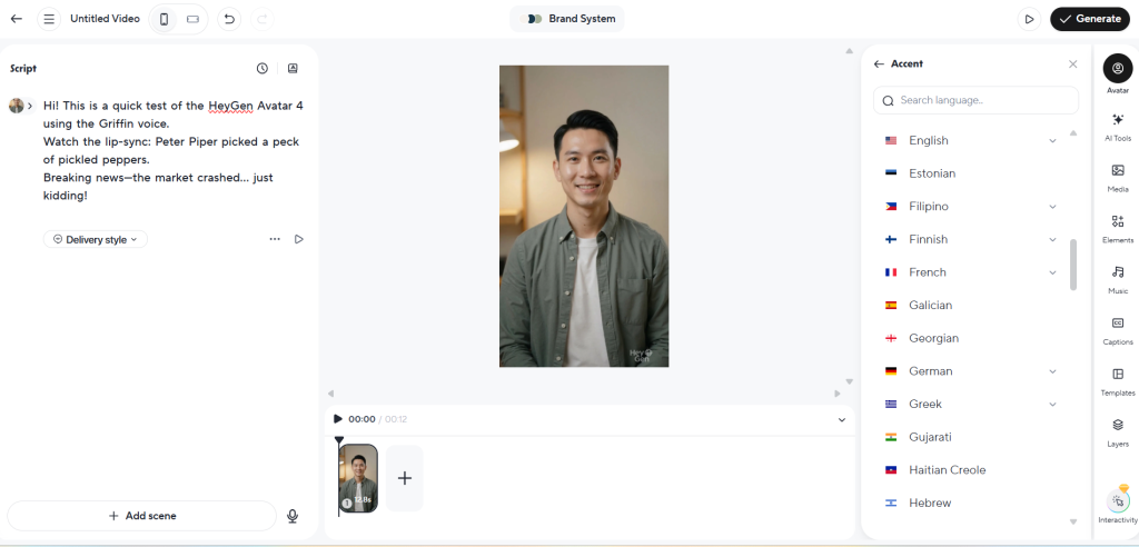 Rather than just describing the results, I ran a live test. I generated a video using HeyGen’s “Griffin” avatar on the Avatar IV motion engine, deliberately stress-testing the system to find its breaking point.