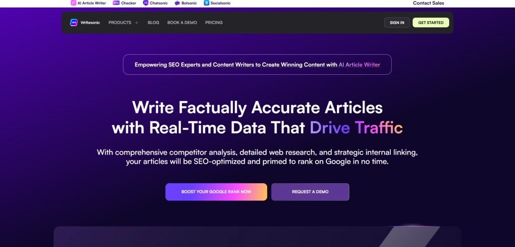 Writesonic makes content fast with AEO in mind. It’s good for optimizing what you have.