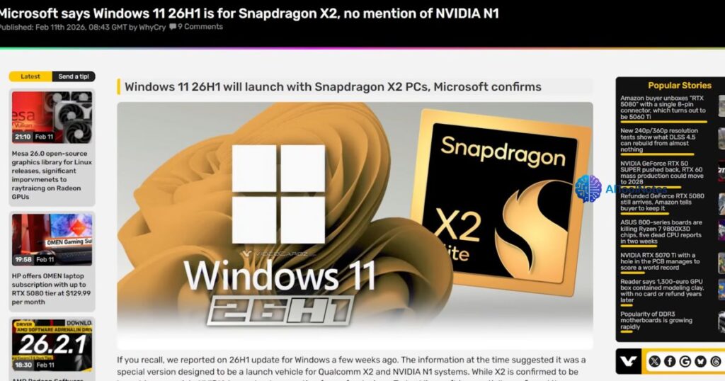 One could assume that 26H1 might also be intended for Nvidia’s N1 series of ARMbased laptop chips, but Microsoft maybe didn’t mention that because those chips have reportedly been delayed yet again.